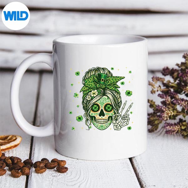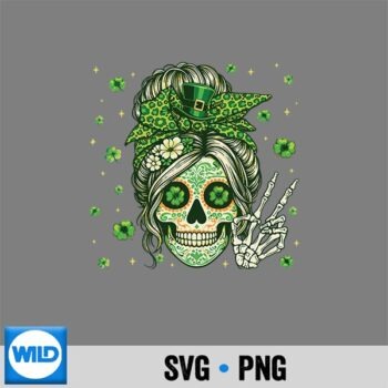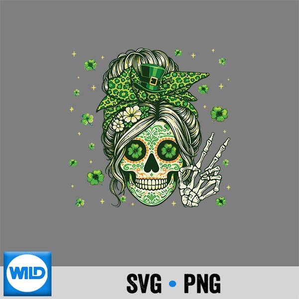 Sugar Skull Messy Bun Leopard Shamrock St Patricks
