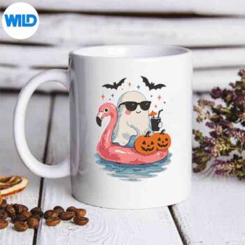 Summer Ghost Watercolor Cute Ghost With Flamingo Float Beach