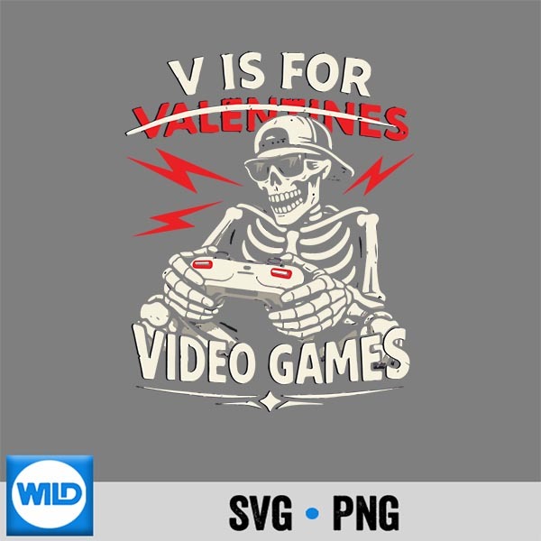 V Is For Video Games Valentines Skeleton Gamer