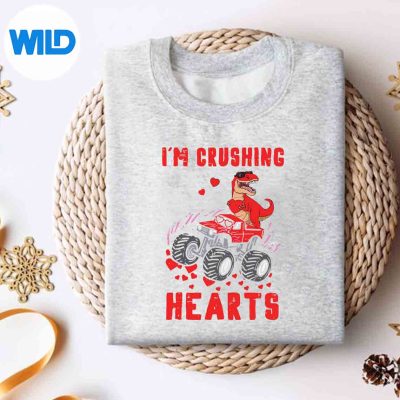 I Crush Hearts T Rex Riding Monster Truck Valentines Day SVG