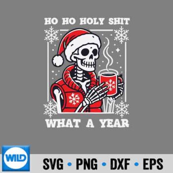 Ho Ho What A Year Skeleton Santa Christmas